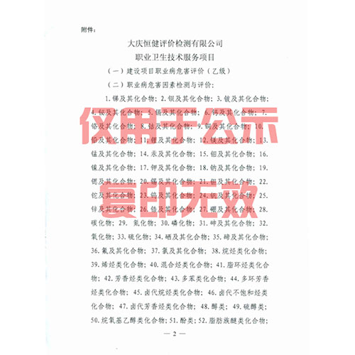 公司2007年9月**獲得黑龍江省衛(wèi)生廳職業(yè)衛(wèi)生技術(shù)服務(wù)機(jī)構(gòu)乙級(jí)資質(zhì)證書(shū)(黑衛(wèi)職認(rèn)字[2007]第093號(hào));2012年9月10日獲得黑龍江省衛(wèi)生廳公共場(chǎng)所技術(shù)服務(wù)機(jī)構(gòu)**技術(shù)能力考核合格批復(fù)文件,成為全省首家合法開(kāi)展公共場(chǎng)所檢測(cè)的技術(shù)服務(wù)機(jī)構(gòu)。2015年6月通過(guò)黑龍江省安全生產(chǎn)監(jiān)督管理局續(xù)展審查,資質(zhì)證號(hào)為黑安職技字(2015)第B-0011號(hào);2018年5月月通過(guò)黑龍江省安全生產(chǎn)監(jiān)督管理局續(xù)展審查,新資質(zhì)證號(hào)為(黑)安職技字(2018)第B-0011號(hào),有效期*2021年6月4日。職業(yè)衛(wèi)生檢測(cè)、評(píng)價(jià)的業(yè)務(wù)范圍包涵石油和天然氣開(kāi)采業(yè);金屬、非金屬礦采選業(yè)和工程建筑業(yè);冶金、建材;化工、石化及醫(yī)藥;輕工、紡織、煙草加工制造業(yè);機(jī)械、設(shè)備、電器制造業(yè);電力、燃?xì)饧八纳a(chǎn)的供應(yīng)業(yè);運(yùn)輸、倉(cāng)儲(chǔ)、科研、農(nóng)林、公共服務(wù)業(yè)等八大行業(yè)100個(gè)項(xiàng)目。是省內(nèi)服務(wù)范圍較為**的職業(yè)衛(wèi)生技術(shù)服務(wù)機(jī)構(gòu)之一。